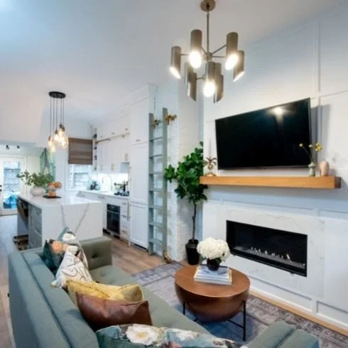 This ladder was featured on STYLED on HGTV Canada! We created a ladder with colour-matched paint and bright gold hardware to compliment this modern-yet-classical space.
